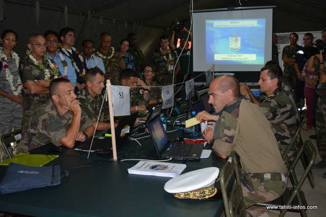 RAIATEA, le 17/10/2017 - Comment doivent-ils se comporter dans des situations d'urgence après le passage d'un cyclone aux Raromatai ? Les Forces armées au fenua s’entraînent à faire face à plusieurs scénarios. Le centre des opérations a été installé à Uturoa, un espace qui a été ouvert ce mardi aux médias.