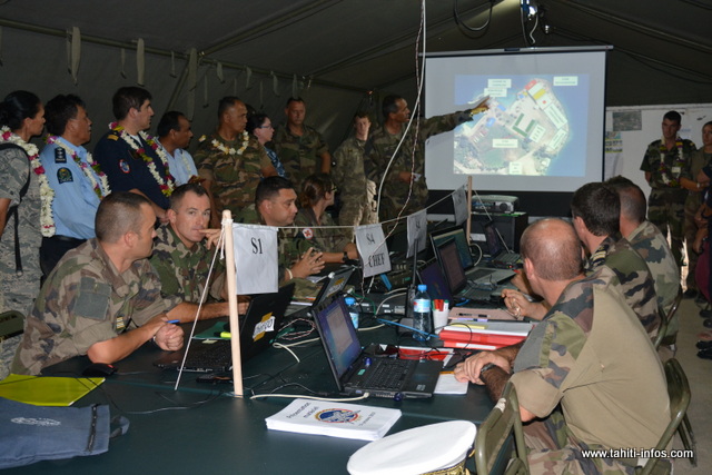 Plus de 650 militaires de l'ensemble des Forces armées en Polynésie ont été mobilisés pour participer à cet exercice. L'idée est d'agir ou de simuler des situations d'urgence auxquelles il faut faire face, après le passage d'un cyclone. "Nous jouons le cas d'un passage de cyclone où les routes, les communications et les services des administrations ne fonctionnent plus normalement. Nous apportons donc le complément aux capacités des communes, du pays et de l'État", explique le contre-amiral Denis Bertrand, commandant supérieur des Forces armées.