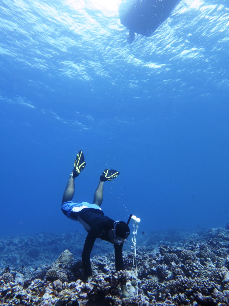 Des micros ont ainsi été placés autour de Moorea à 10 mètres de fond sur la pente externe sur huit sites : quatre au sein de l'aire maritime protégée (AMP) de Moorea et quatre dans des zones non protégées.