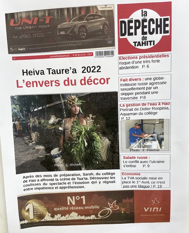 L'autre concours auquel ont participé les collégiens est celui de la semaine de la presse et des médias, en mars dernier. Née d’une initiative conjointe entre le Centre de lecture de Pirae, la Direction générale de l’éducation et de l’enseignement (DGEE), et en partenariat avec La dépêche de Tahiti et d'autres sponsors, l'édition 2022 avait pour thème : S’informer pour comprendre le monde. Un thème qui doit conduire à distinguer les différentes sources, comprendre les contextes de fabrication et de diffusion de l’information, connaître les usages et les effets des images et enfin savoir déconstruire un stéréotype. Ouvert de la maternelle jusqu’au lycée, ce concours permet aux élèves de comprendre le système des médias, former leur jugement critique, développer leur goût pour l’actualité et forger leur identité de citoyen.