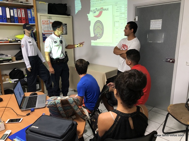 "Le GSP est composé de quatre fonctionnaires et nous sommes en charge de la prévention dans les établissements scolaires de Papeete et de Pirae. On va dans les écoles, on fait de la prévention. Les sujets peuvent être diverses, selon la demande du chef de l'établissement, ça va du cyber-harcèlement, du danger d'internet, aux dangers des drogues.