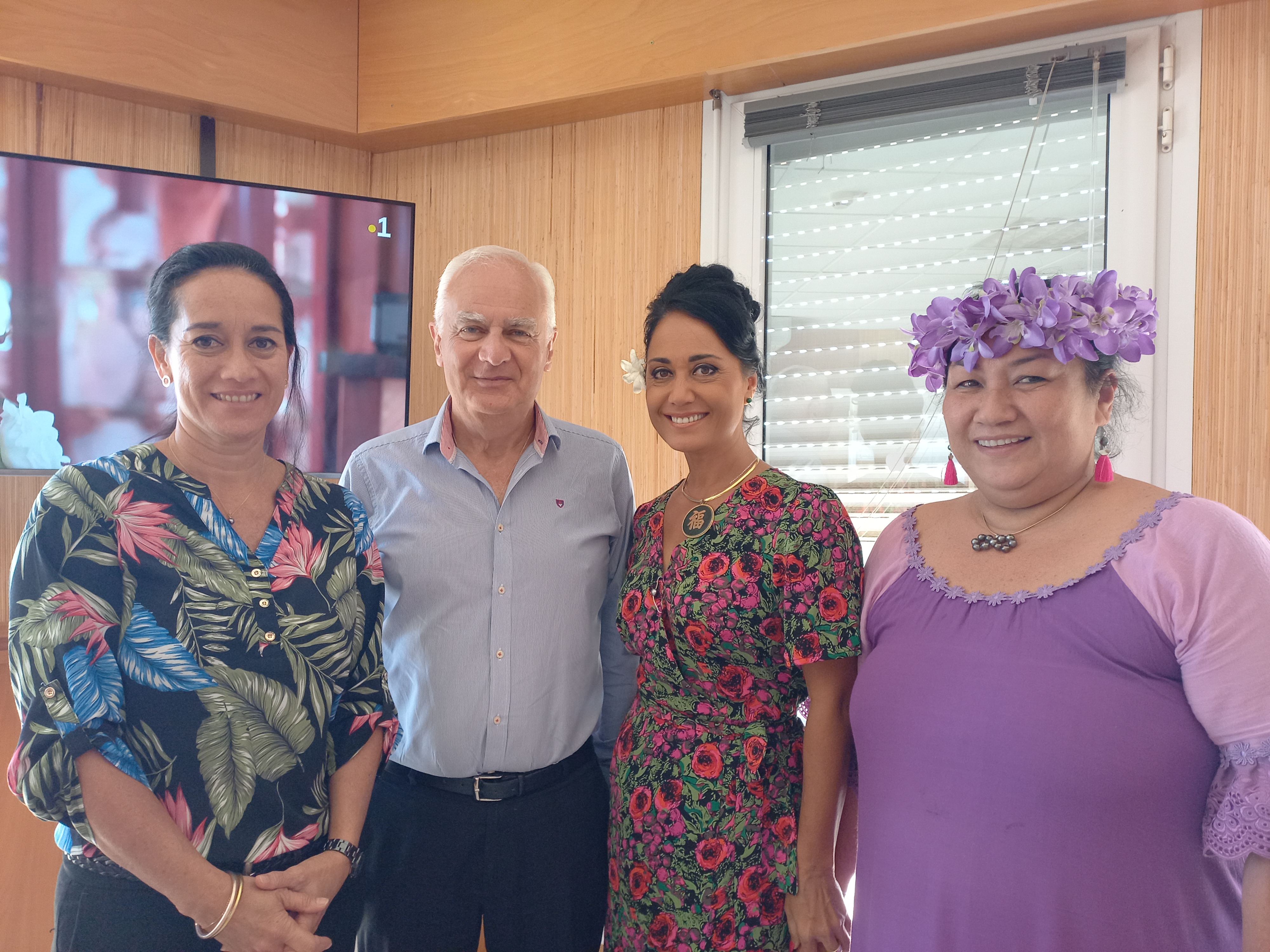 Tepiu Bambridge, directrice éditoriale, Gérard Hoarau, directeur régional, Stella Taaroamea, rédactrice en chef de la rédaction TV, radio et web et Noëlla Tau, adjointe à l'antenne radio.