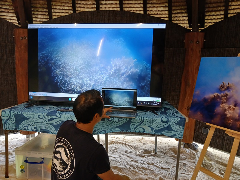 Vetea Liao, co-fondateur de l'association Tama no te Tairoto, observant une vidéo de ponte, était sur tous les fronts ce samedi recueillant les données qui lui arrivaient d'un peu partout au fur et à mesure. crédit photo SD