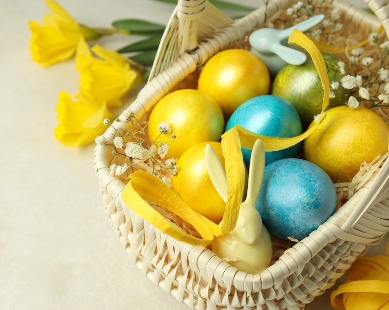 Parce que la fête de Pâques est souvent l’occasion de cacher les œufs et les lapins en chocolat dans le jardin pour les enfants, le sac d'oeufs à cacher au chocolat au lait est à seulement 395 F et la poule couveuse garnie de la marque Jacquot à 350 F.