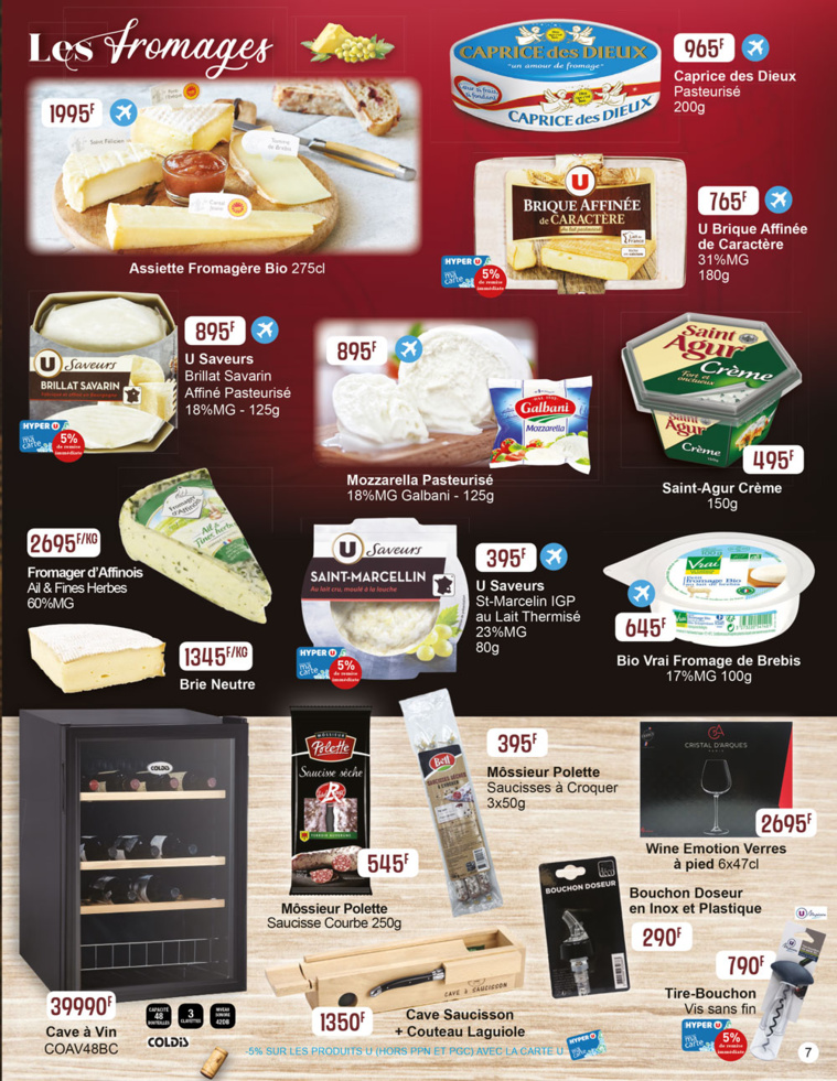 Puisque Pâques est également l’occasion de déguster un bon repas, Hyper U présente dans ce prospectus des produits fromagers au meilleur prix, comme l'assiette fromagère Bio à 1995 F ou le St Marcellin de la marque U saveurs à 395 F.