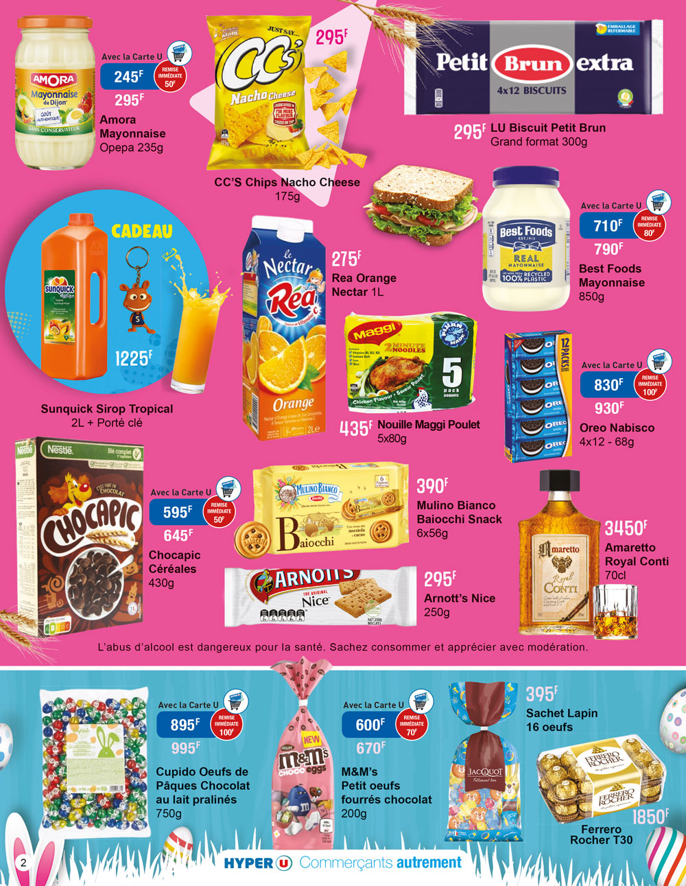 Partez à la chasse aux oeufs…et aux réductions ! Tous les détenteurs de la carte de fidélité Hyper U ont droit à une remise immédiate en caisse de 70F sur les petits oeufs fourrés chocolat de M&M's et de 100 F sur les oeufs de Pâques au chocolat praliné de la marque Cupido.