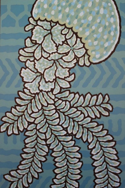 Vaiana Drollet décrit : “Dans un style bien affirmé aux contours marqués d’un cerne noir, ses peintures se nourrissent des camaïeux de couleurs eaux et sables. La touche est douce mais sûre, ses sujets puissamment posés ne se livrent cependant pas facilement. La pureté de la ligne et des aplats de couleurs cache une vision plus complexe.” Il y a plusieurs niveaux de lecture. “D’apparence simple et efficace son œuvre s’apprivoise petit à petit et laisse une grande place à l’introspection. Elle nous interroge sur notre place dans l’univers, sur l’importance d’observer la nature et d’écouter son langage. Se laisser guider par tous nos sens est la clé pour entrer dans son univers.”
