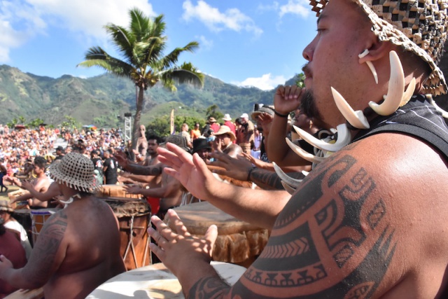 Nuku-Hiva, le 16 décembre 2023 - La première journée du Matavaa vient de se clôturer à Nuku-Hiva aux Marquises. Elle a débuté aux premières lueurs de la journée dans la baie de Taihoae à Nuku Hiva. Pour cette première journée, le festival a lancé les festivités avec une cérémonie ancestrale tôt le matin, suivie de l'arrivée de la pirogue de Hiva Oa. Ensuite, chaque délégation s'est présentée lors de la superbe cérémonie d'ouverture, avec des danses et des chants. La journée s'est terminée tard dans la nuit avec trois Koika Po : celui du groupe Tahakaha o te kuhane tapu en provenance de Tahiti, ainsi que ceux des délégations de Fatu Hiva et de Ua Pou. Retour en images sur cette première journée riche en émotions.