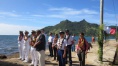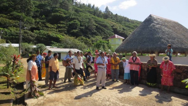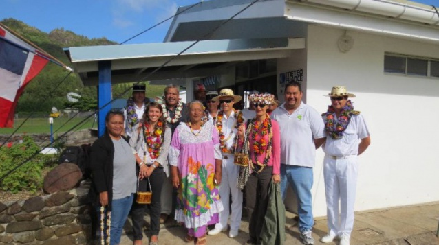 Après vingt-huit heures de trajet en mer, la délégation a été chaleureusement accueillie au quai de Ahurei par M. Tuanainai NARII, maire de la commune de Rapa, son conseil municipal et l’orchestre local de l’île.