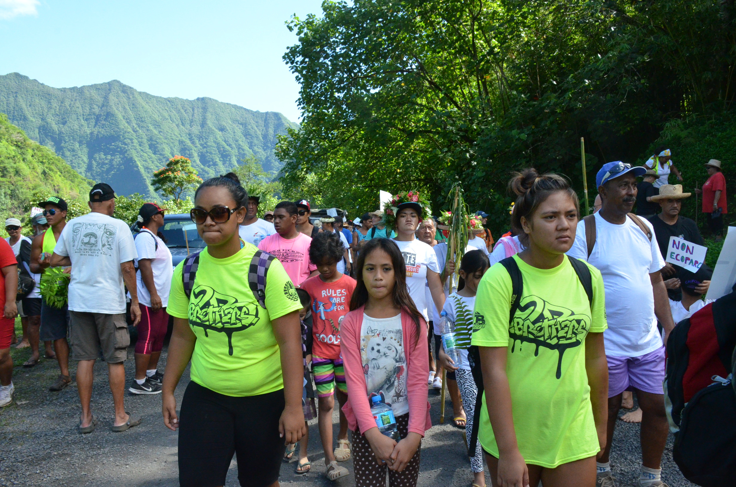 Enfants, adolescents, adultes, parents, grands-parents, une centaine de personnes s'est réunie, samedi matin, pour une marche contestataire de six kilomètres dans la vallée de la Papeno'o afin de protester contre le projet Ecoparc. Cette deuxième marche organisée par l'association culturelle Haururu a pour objectif de faire découvrir la vallée de la Papeno'o aux Polynésiens, mais aussi de prouver que le projet est inutile. Le projet écoparc est un grand projet d'aménagement de la vallée prévoyant entre autres: la construction de plusieurs hôtels, ainsi que la mise en place d'un téléphérique.