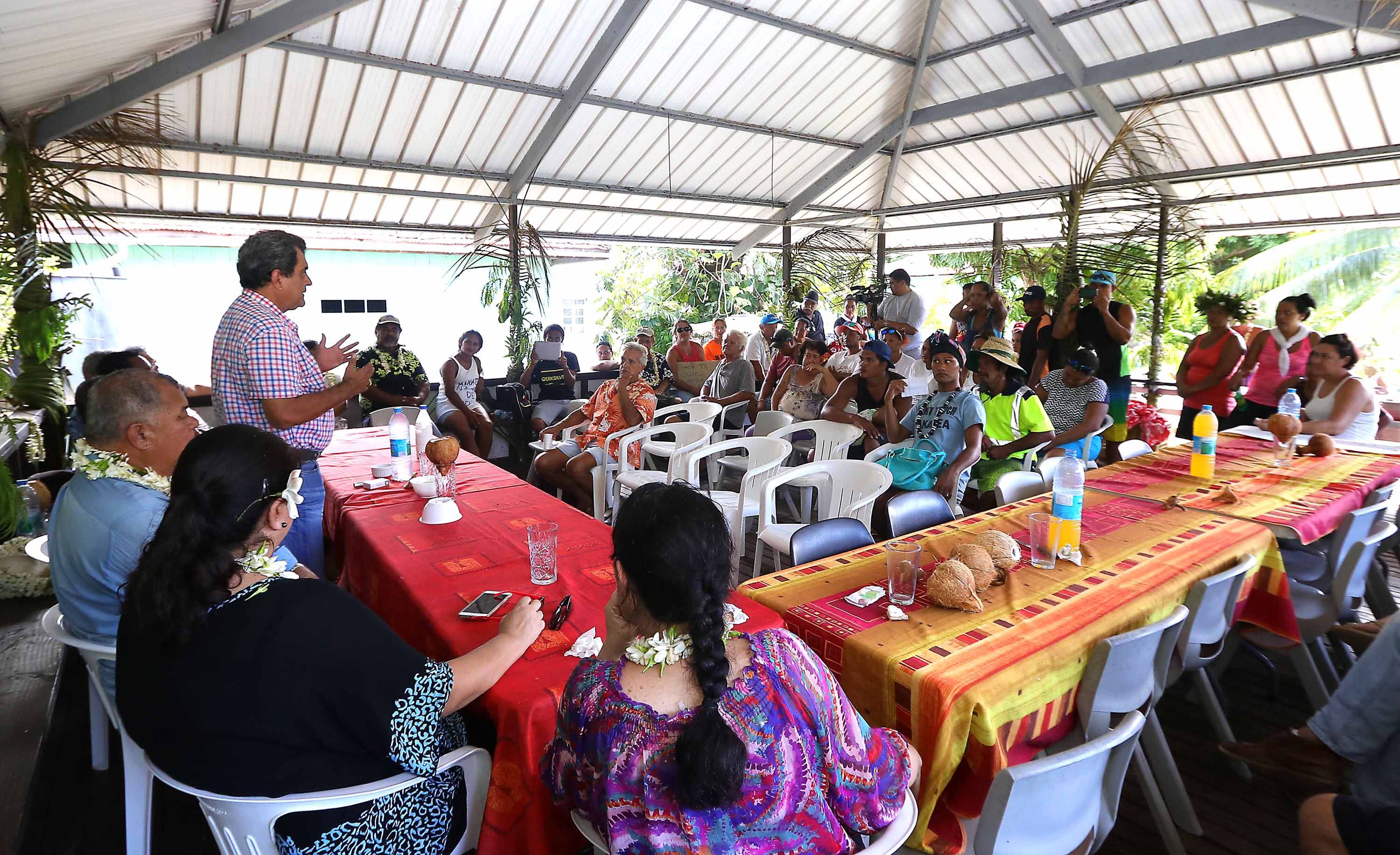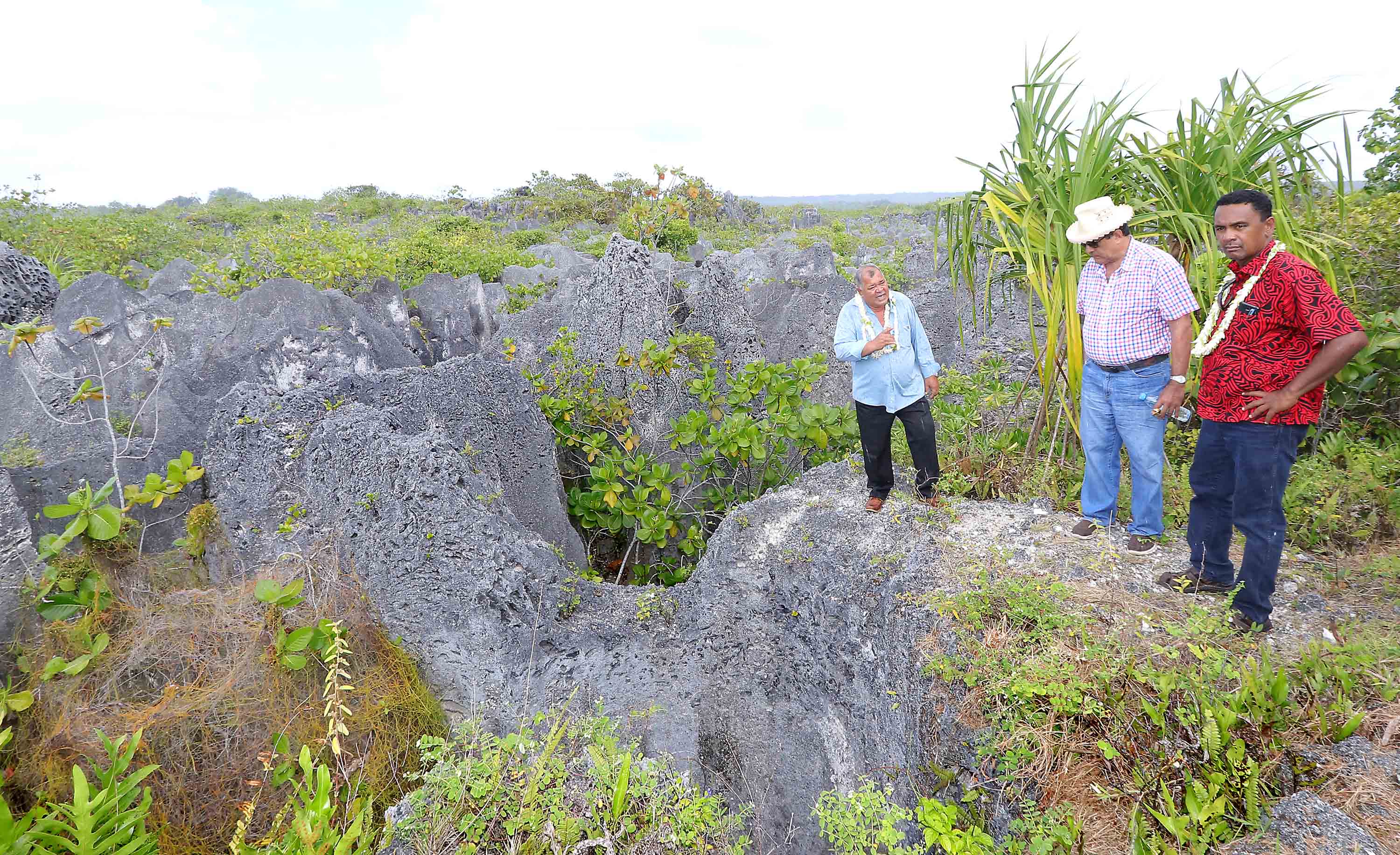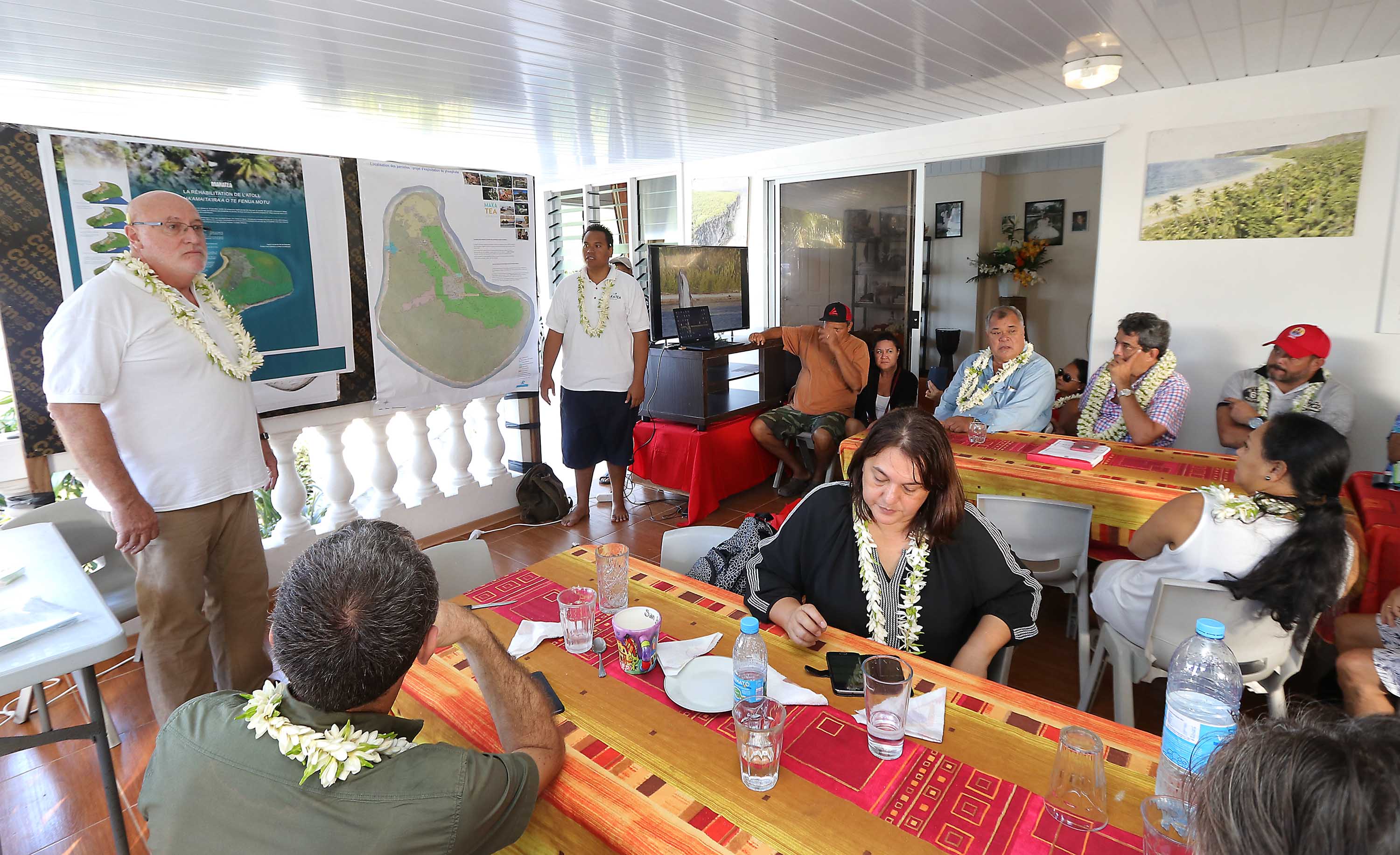MAKATEA, le 22/07/2017 - (Communiqué de la Présidence) Le président Edouard Fritch, accompagné d’une partie de son gouvernement et du maire de Rangiroa, Teina Maraeura, s’est rendu vendredi sur l’atoll de Makatea afin de faire le point sur le projet d’extraction de phosphate porté par Colin Randall. La délégation a été accueillie sur place par le maire délégué Julien Mai et les membres du conseil municipal de la commune de Rangiroa.