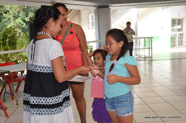 Un kit scolaire a été remis à 426 enfants de 3 à 11 ans. Seuls les enfants bénéficiaires d'une bourse de cantine ont pu bénéficier de cette opération. Une remise symbolique à une vingtaine de familles a été organisée par la mairie de Punaauia hier.