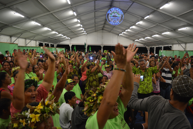 Un peu avant 22 heures, le dépouillement terminé, la répartition des sièges au sein du conseil municipal de Papara déterminée : 24 pour la liste de Putai Taae, cinq pour celle de Béatrice Le Gayic, trois pour la liste de Christelle Lehartel et un siège seulement pour Médéric Tehaamatai, c'est en chansons et en dansant que les électeurs ont terminé cette soirée électorale. Vendredi (le 30 octobre) à 9 heures, ce sera l'élection du maire de la commune et de ses adjoints parmi les 33 nouveaux conseillers municipaux élus ce dimanche soir.