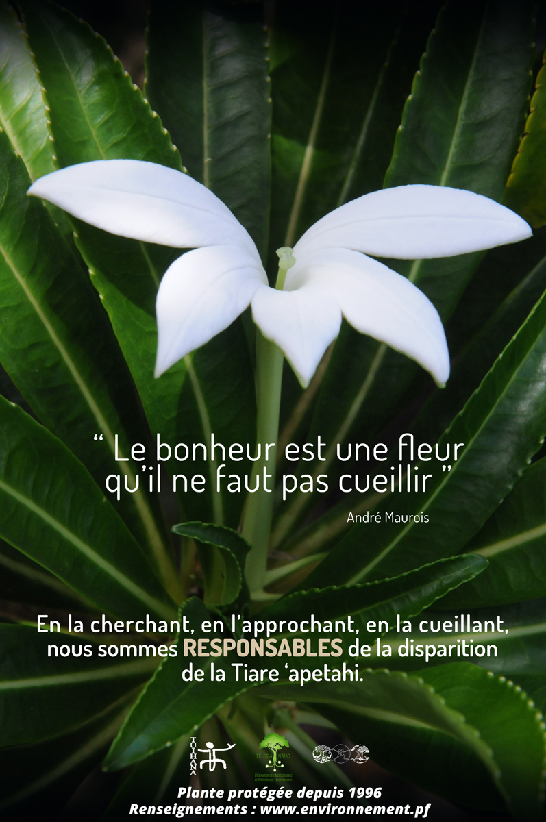 Enfin, "la Tiare ‘apetahi n’est pas la seule plante endémique des plateaux Te Mehani menacée d’extinction. En effet, sur ces plateaux 33 plantes endémiques sont menacées, telles que le pandanus des Te Mehani – Fara oporo (Pandanus temehaniensis) ou le puarata (Metrosideros collina var. temehaniensis). Toutes ces plantes vivent ensemble, les unes à côté des autres et permettent au tiare ‘apetahi de se régénérer. En détruisant la végétation par coupe ou même par piétinement, vous participez à l’extinction de ces plantes uniques au monde dont la plupart n’existe que sur ces plateaux (320 ha)" rappelle l'association en conclusion.