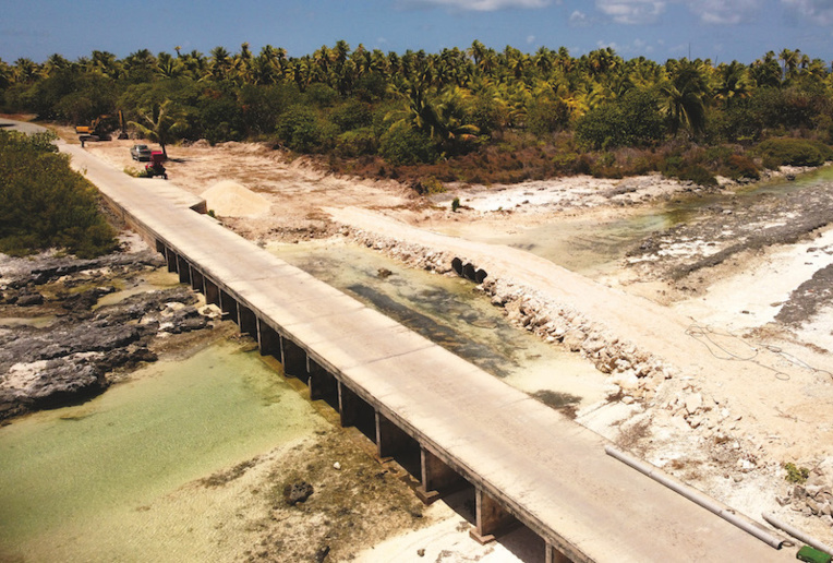 Au total plus de 80 millions de Fcfp ont été débloqués par le Pays et l’État pour les travaux de la commune de Rangiroa : 23,3 millions de Fcfp pour la reconstruction du pont radier Sud de Tiputa et 60 millions de Fcfp pour le chantier de bétonnage de la route.
