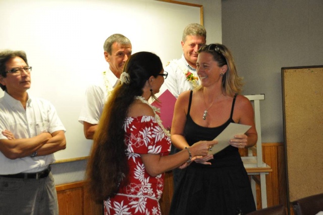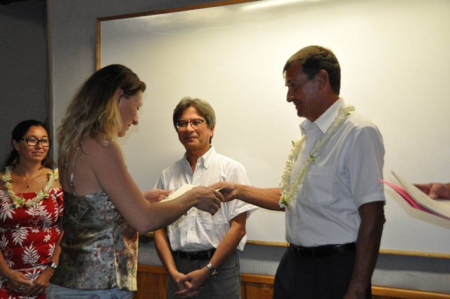 M. Jean-Pierre LAFLAQUIERE, Haut-Commissaire de la République en Polynésie française, aux côtés de M. Bruno MARTY, Ministre de l’Equipement, représentant la Ministre de la Santé, de M. Tam NGUYEN, Directeur de l’institut Mathilde FREBAULT, de M. Eric CLUA, Délégué régional à la recherche et à la technologie et président du jury, a remis ce vendredi 26 juillet 2013, une attestation de réussite aux 29 étudiants ayant obtenu leur licence d’Infirmier à la première session de Juillet (3 ans d’étude), à l’institut de formations professionnelles de Santé Mathilde FREBAULT.