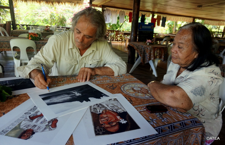 Quinze ans après, Titouan Lamazou a retrouvé, aux îles Marquises, les vahine dont il avait brossé le portrait, dans le cadre de son projet "Zoé-Zoé, Femmes du Monde" (2001-2007), dévoilé au Musée de l'Homme de 2007 à 2008. Il a ainsi offert et signé quelques-unes de ses exquises esquisses aux habitantes du Fenua Enata qui avaient posé pour lui. Nommé "Artiste de l'UNESCO pour la Paix" en 2003, en reconnaissance "de son engagement personnel et en sa qualité de peintre, d’écrivain et de photographe en faveur de la promotion des femmes et de l’affirmation de leurs droits", le militant a réalisé de nombreuses esquisses en hommage à la gent féminine. L'homme au regard bleu océan et aux cheveux rebelles couleur poivre et sel se souvient : "Parmi les 250 portraits de femmes croisées lors de mes voyages, j'ai dû en faire une douzaine de Polynésiennes vivant aux Australes, aux Marquises, aux Tuamotu, etc. C'était en 2002 et j'ai présenté également une exposition à Tahiti en 2004. J'ai découvert la Polynésie en 1977 avec l'équipage d'Éric Tabarly (sur "Pen Duick VI", ndlr), et mon ancienne compagne a enseigné l'espagnol à Ua Pou en 1988-1990, alors que j'allais entreprendre le Vendée Globe."