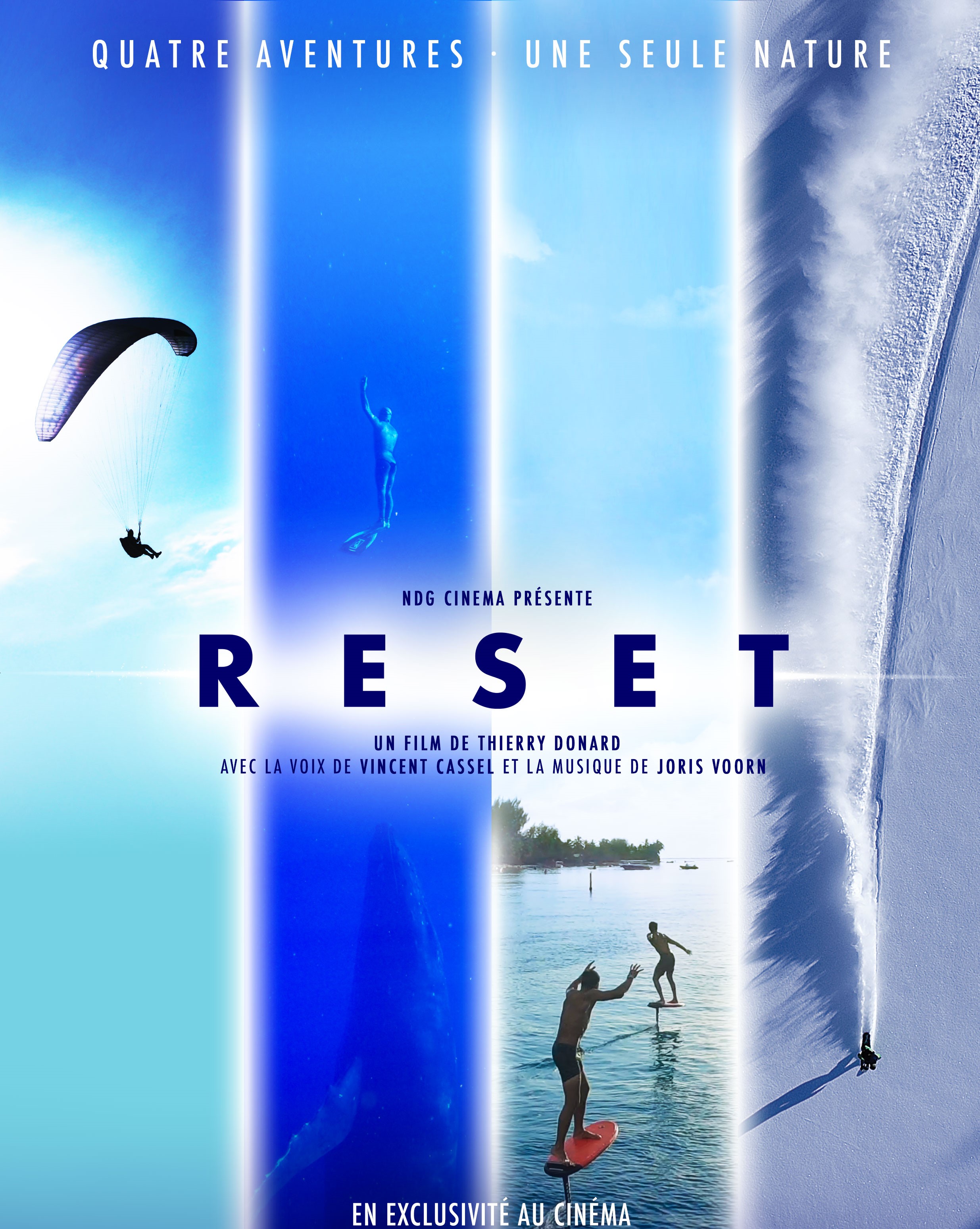 Filmé spécialement pour le grand écran, Reset est l’œuvre de Thierry Donard le réalisateur de la Nuit de la glisse. Il sera projeté en VO sous-titré en français. Il dure 1h25, sa sortie officielle est prévue le 10 juin. La voix-off de ce documentaire est celle de Vincent Cassel.