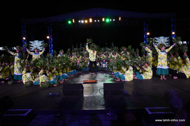 En début de soirée, le public et les membres du jury ont apprécié le talent du groupe Tamari'i Mahina. Inscrit dans la catégorie tārava raromata'i, ce groupe a envoûté la place de To'atā avec ses différentes mélodies. Même si leur thème n'était pas une histoire facile à raconter, la troupe a tout de même touché les personnes qui étaient présentes, vendredi soir.