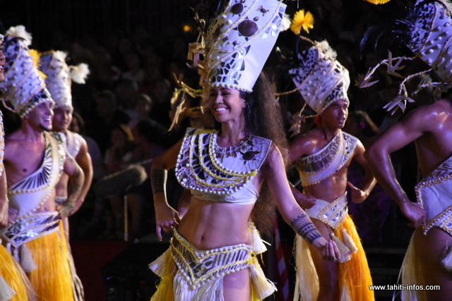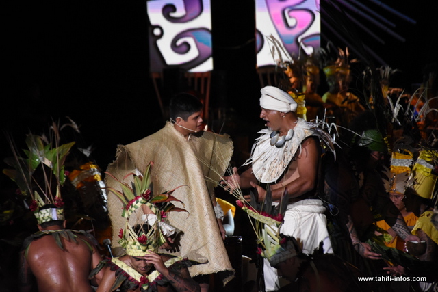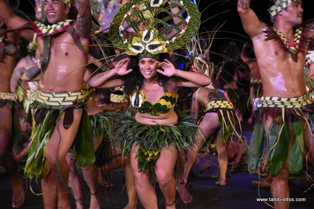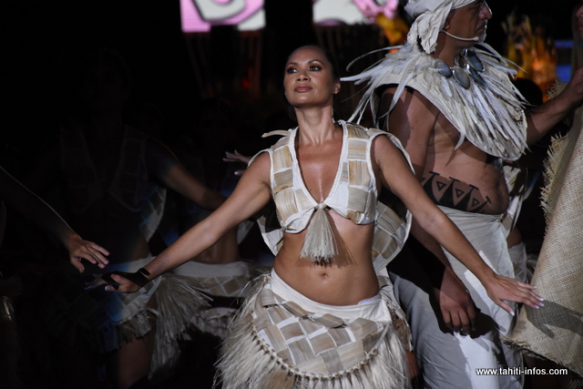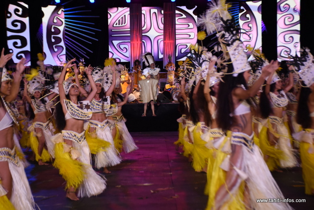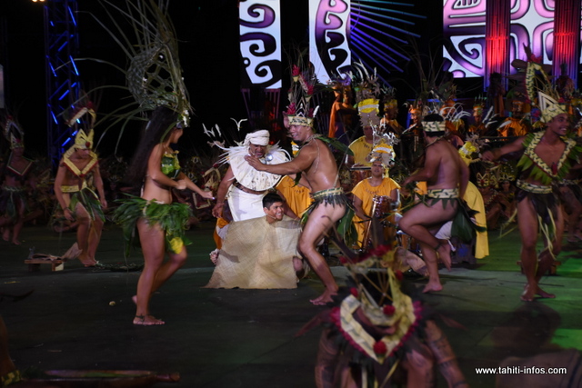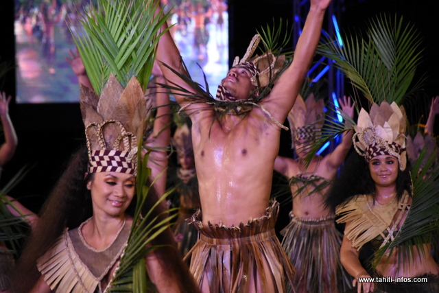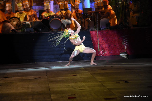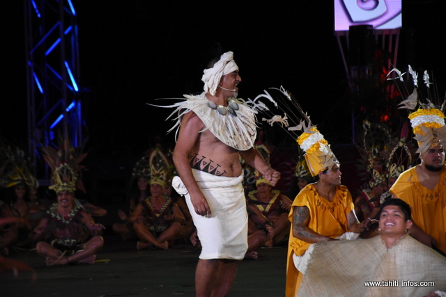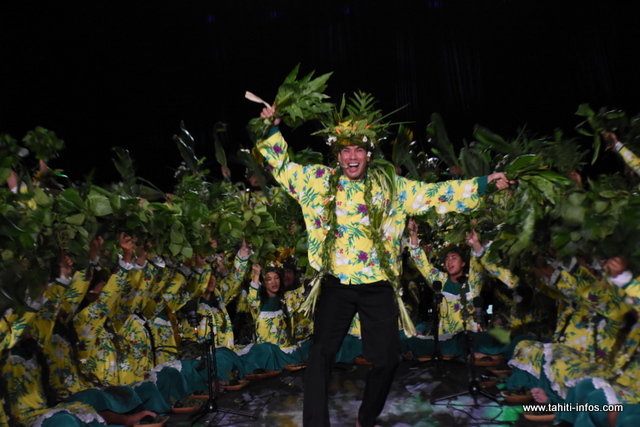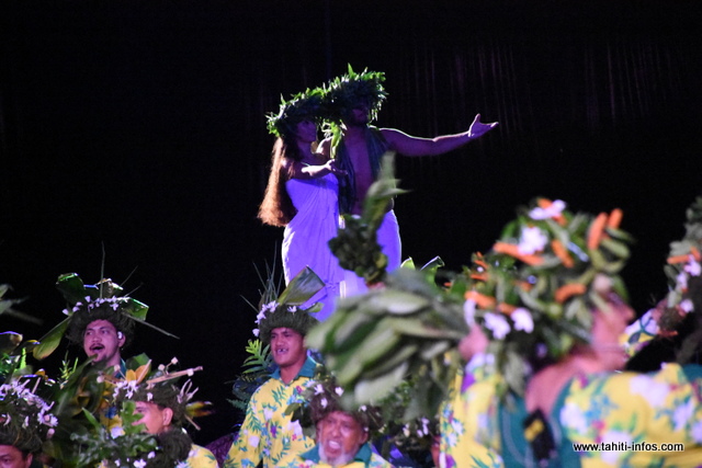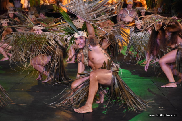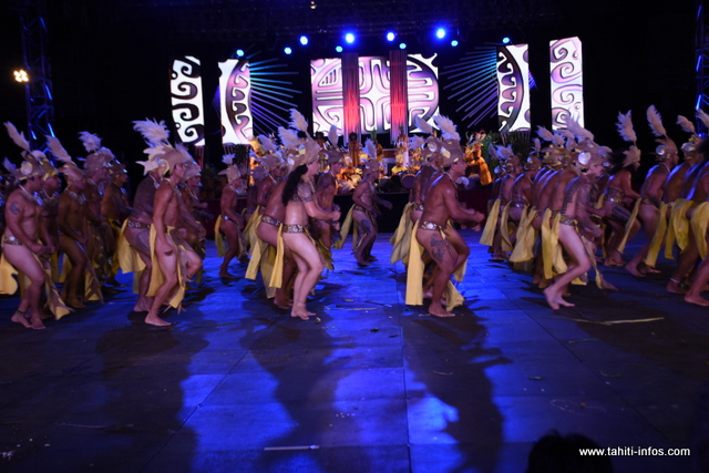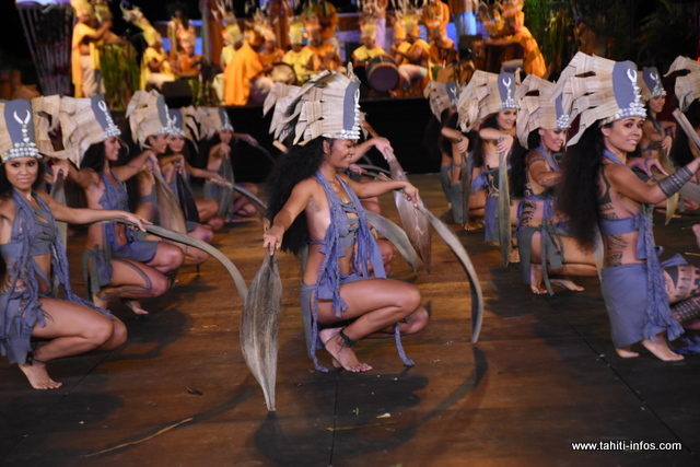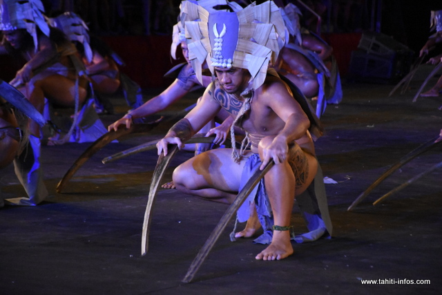 C'était le clou de la soirée de vendredi, la troupe de Kehaulani Chanquy a tapé fort encore cette année, avec son thème : Tūpaia - E aha nei ra ho'i ? Un spectacle très dynamique qui a rassemblé 200 danseurs sur la scène. Plusieurs tableaux pour raconter les enseignements de Tūpaia à son neveu, Taiata. Des messages qui relatent la façon de voir de nos anciens, une vie où le polynésien vivait en accord avec l'environnement qui l'entourait.