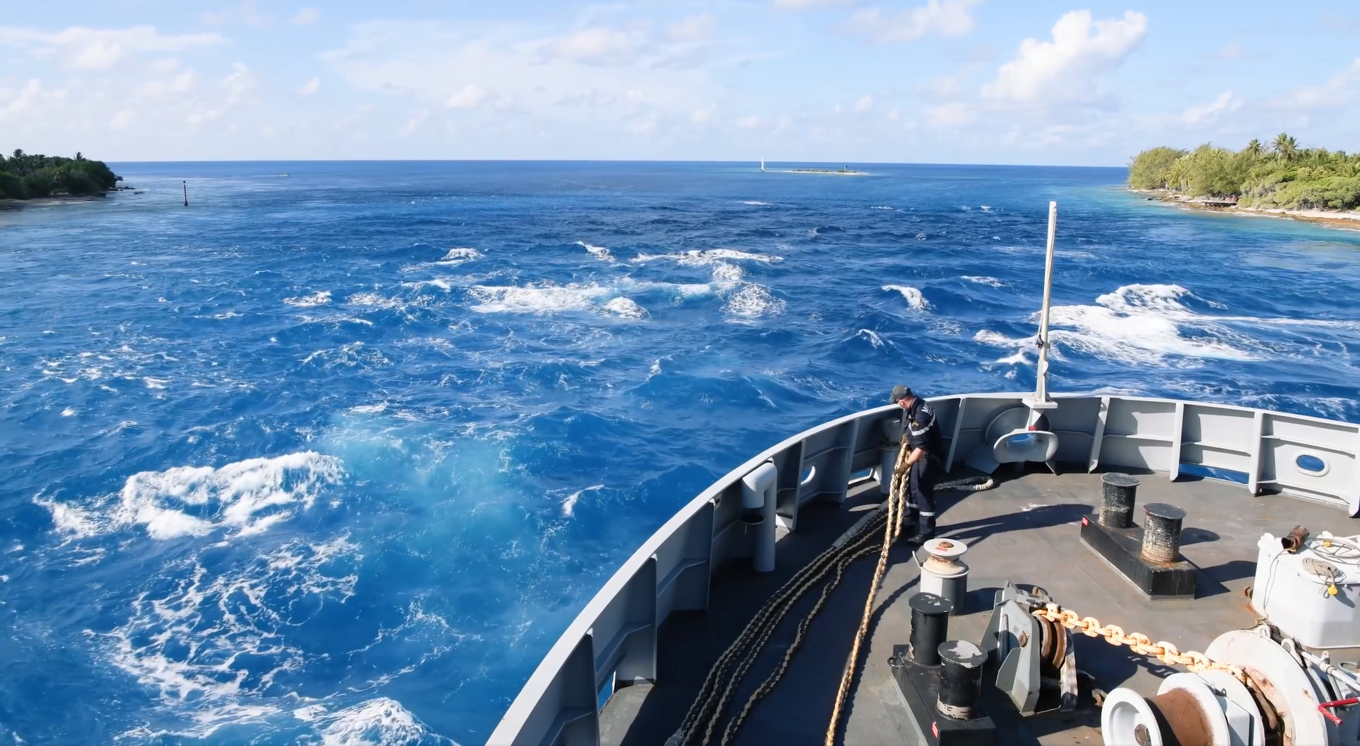C’est à bord du Bougainville, bâtiment de soutien et d'assistance outre-mer de la marine nationale, que les chercheurs ont pu aller au plus près de ces oiseaux lanceurs d’alerte potentiels. Ils ont aussi pu profiter d’une baleinière bien utile pour franchir le récif dans les zones les moins accessibles qu’ils sont allés explorer. Déposés de motu en motu, ils ont ainsi approché les meilleurs sites pour capturer les oiseaux et leur installer des balises GPS. Les positions envoyées permettront d’étudier le lien entre leurs migrations et les évènements climatiques.