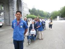 Après le Jamborée, 35 jeunes scouts polynésiens se sont rendus à Lourdes ou ils ont découvert avec beaucoup d'attention le destin de Bernadette Soubirous. Ils se sont portés volontaires pour aider les malades, les menant aux bains, à la prière. "Aider son prochain, faire preuve de solidarité", là encore les jeunes ont mis en pratique les valeurs de fraternité propres au mouvement.