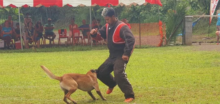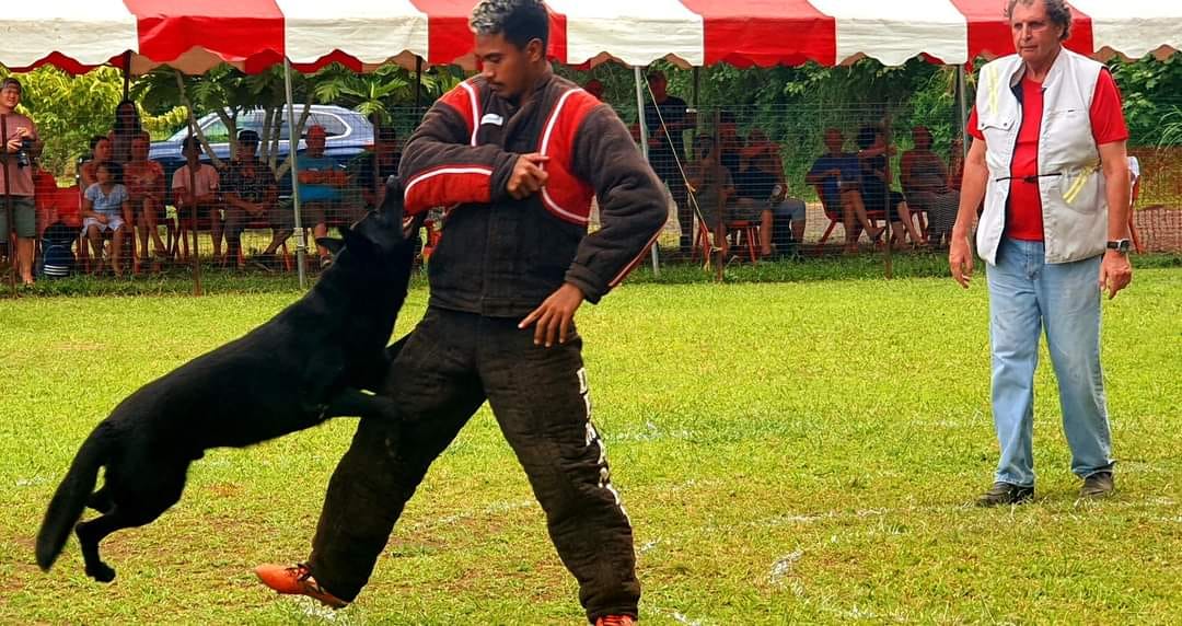 Ruarii Mataoa premier Polynésien et le seul de tout le Pacifique à avoir le niveau 2 en tant qu’homme assistant c’est-à-dire dresseur de chien à la discipline du mordant ©Club sportif canin de Teva i uta