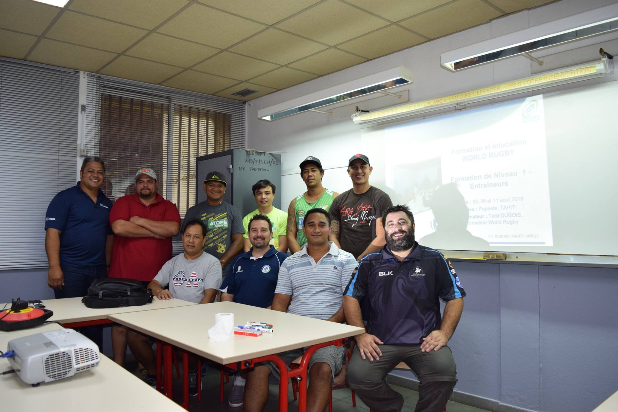 Ce sont 8 stagiaires, issus de 3 clubs (Faa’a Rugby, RC Pirae, AS Manu Ura) mais aussi un entraineur confirmé, Jérôme Alfonsi, ancien sélectionneur du Cambodge et du Kenya, qui ont participé à cette session. Ce dernier, professeur de sport muté à Huahine, œuvrera avec la fédération maohi de rugby pour le développement du rugby sur Huahine au niveau des collèges, entre autres.