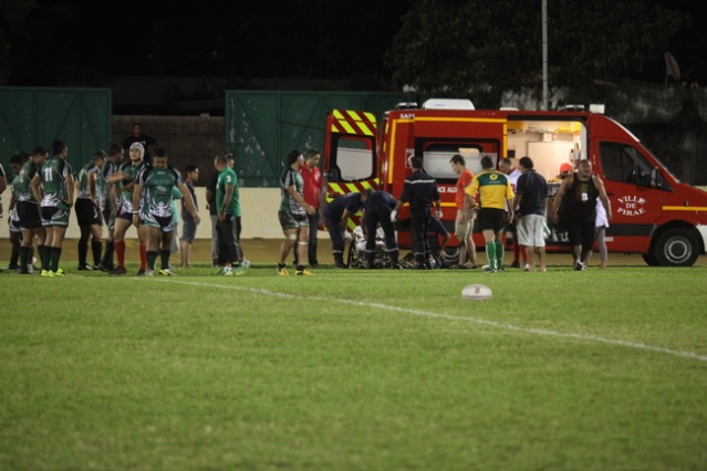 « On a eu un blessé, mais ce sont les aléas du rugby, c’est une cheville qui n’est peut être même pas fracturée ou une très grosse entorse, mais il sera éloigné des terrains pendant quelque temps c’est sûr. Cela reste un fait de jeu sans aucune agressivité quelconque. »