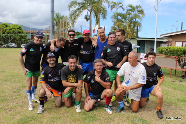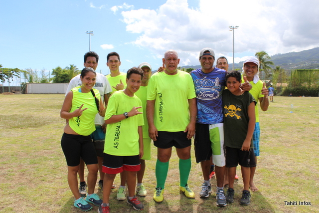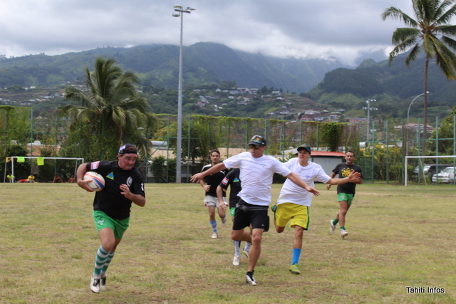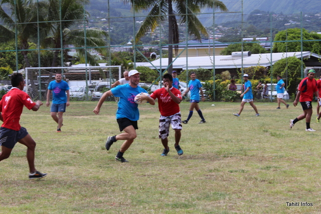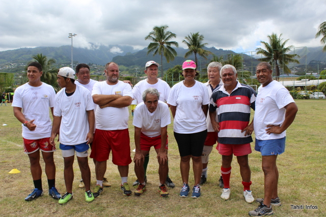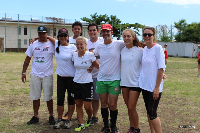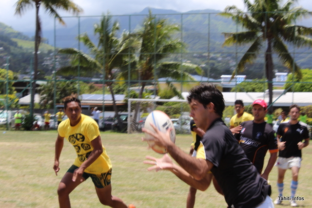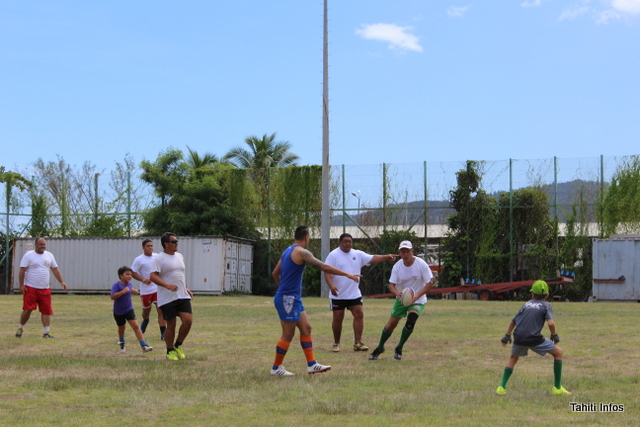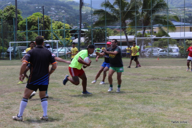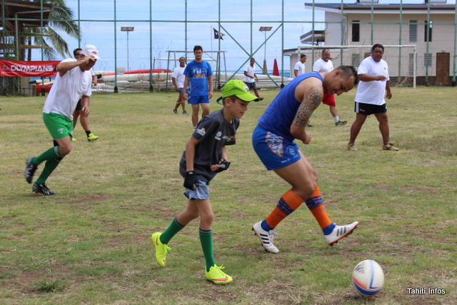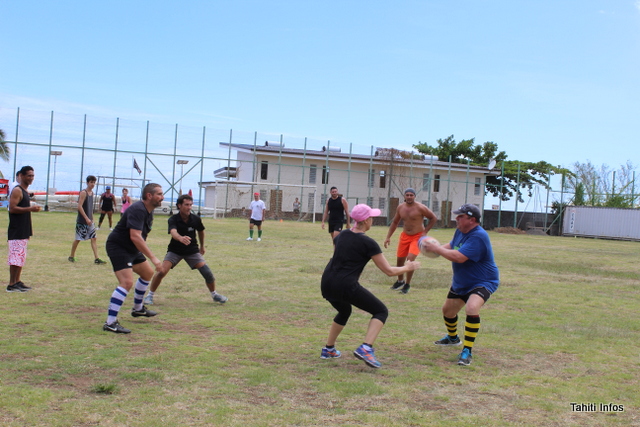 PAPEETE, le 24 janvier 2015 : Ambiance familiale et conviviale ce dimanche au Stade OPT de Arue où l'association "les Vieilles Pompes de Tahiti" organisait un tournoi de "Touch Rugby" . 16 équipes de 7 joueurs s'affrontaient dans deux catégories: les "familles" , équipes composées de joueurs des vieilles pompes, de femmes et d'enfants, et la catégorie "élite", des équipes de joueurs réguliers évoluant dans différents clubs de rugby.