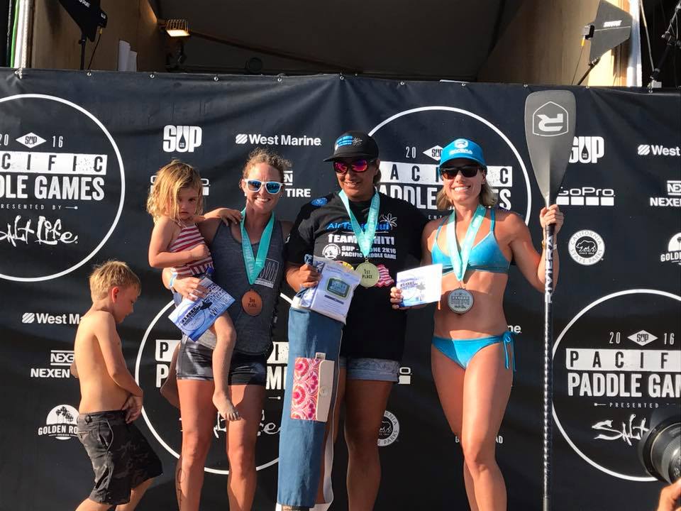 « Je veux remercier mon « tane » Angelo, mon petit garçon et toute ma famille. Je remercie également Stéphane Lambert, la Fédération tahitienne de surf, Lewis Sulpice, mon coach de SUP et la team Tahitian Warrior, Chris, Teiva Livine, Kahaia et Almary. »
