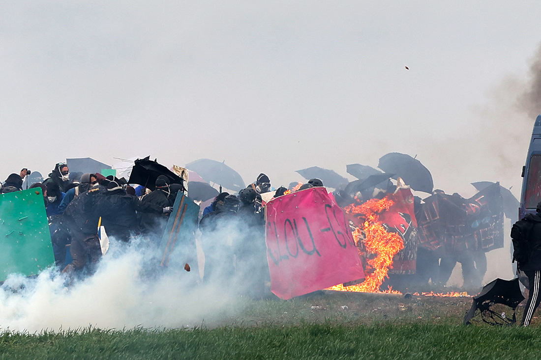 Paris, France | AFP | mercredi 29/03/2023 - De violents affrontements ont éclaté samedi à Sainte-Soline (Deux-Sèvres) lors d'un rassemblement interdit contre des "bassines" et la polémique ne faiblit pas sur le délai d'intervention de secours.
