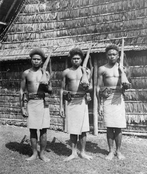 Selon les Britanniques, l’affaire de Malaita se solda par une cinquantaine de morts ; deux cents répondent les Kwaoi qui subirent une répression très dure. William R. Bell (à droite) fut la première victime de la rébellion de certains Salomonais contre un impôt prélevé sur chaque habitant.