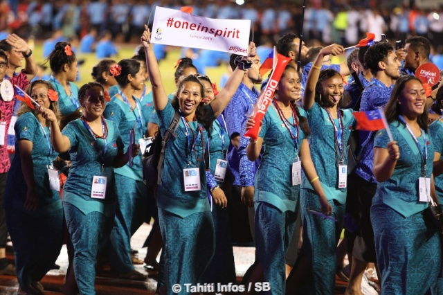 Plus de 3 000 athlètes ont défilé ce dimanche dans le stade de l'Apia Park pour la cérémonie d'ouverture des XVIe Jeux du Pacifique qui se tiennent à Samoa du 7 au 20 juillet prochain. Pour cette nouvelle édition 24 pays ont répondus présents, dont Tahiti qui a envoyé pour l'occasion 271 aito pour représenter les couleurs du fenua. Ces derniers ont défilé avec fierté et honneur dans l'immense stade de l'Apia Park qui a rassemblé pour la cérémonie d'ouverture plusieurs milliers de personnes.
