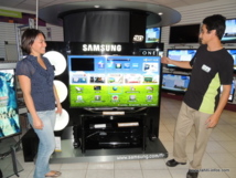 PAPEETE, le 16 octobre 2012: Le magasin TESA Digital à Fare Ute présente la SAMSUNG SMART TV, une télévision de toute dernière génération, hi-tech et tout en un, qui concilie le must des technologies disponibles en matière de Télévision avec le surf illimité sur Internet. Une télévision "no limit" qui offre le confort des applications telles qu'on les connait pour les smartphone ou les tablettes, avec des programmes fitness, kids ou encore culturels, l'accès à tout le web, une utilisation conviviale de skype et même un réseau dédié de type plus"familial" que social avec "family story" pour partager des photos, des vidéos, des messages dans des conditions simplissimes d'utilisation et en toute intimité. Bien sûr les inconditionnels pourront également se rendre sur facebook ou twitter et recevront leurs notifications.