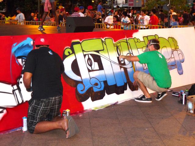 Les ateliers d'apprentissage ont été littéralement pris d'assaut par les visiteurs de tous âges venus nombreux partager leur passion. Un stand de graff-art a permis aux artistes en herbe d'exprimer leur talent sous la direction des graffeurs experts de la boutique Mata Store.