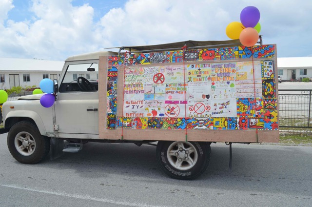 La voiture d'une professeure a été décorée de dessins sur la santé réalisés par les élèves du collège.