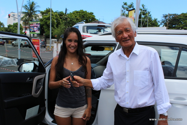 Raumiri Terii reçoit les clefs de sa voiture des mains d’Albert Moux