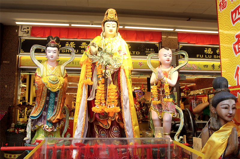 S’il est une chose à laquelle les Chinois de Singapour accordent le plus vif intérêt, c’est leur réussite économique et sociale ; à ce titre, au 178 de la Waterloo Street, le temple Kwan Im Thong Hood Cho est incontournable pour une double raison : sa fréquentation permet aux fidèles de mettre la chance de leur côté dans leurs entreprises s’ils prient avec ferveur Kuan Yin, mais aussi dans la foulée Avalokitesvara, la déesse de la miséricorde qui se trouve dans le temple contigüe, le Sri Krishnan.