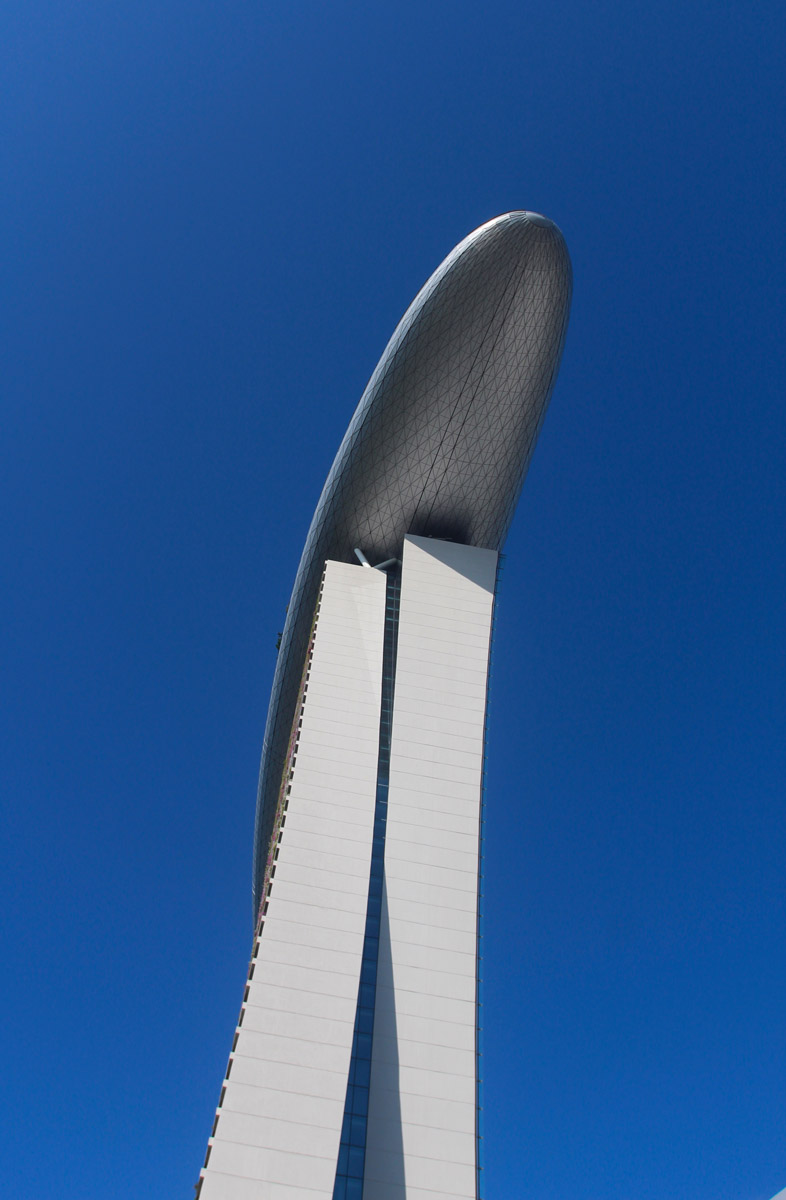Un détail donne une idée de la difficulté à réaliser le projet : le Marina Bay Sands et sa piscine géante reposent sur un très complexe système qui permet à la piscine, conçue en « infinity », de toujours être parfaitement horizontale au millimètre près, ce qui n’était pas gagné à 191 mètres d’altitude sur un terrain formé de remblais gagnés sur la mer.