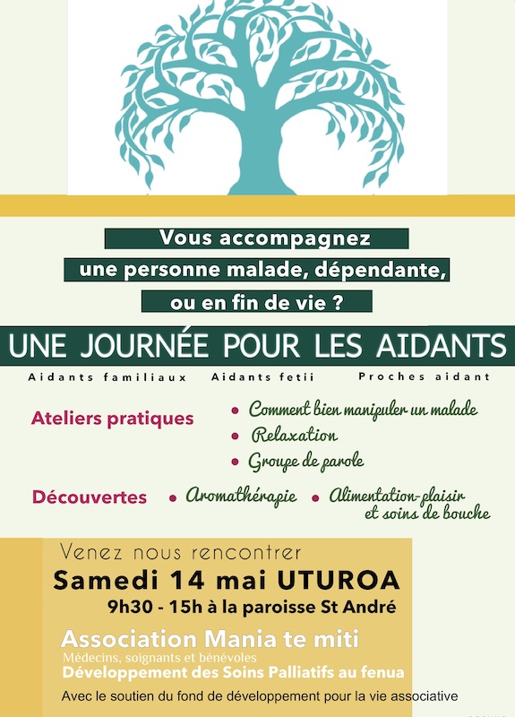Raiatea, le 12 mai 2022 - À Raiatea, samedi a lieu à la paroisse Saint-André de Uturoa une rencontre avec l’association Mania te miti dont le but est de promouvoir les soins palliatifs et de contribuer à leur développement en Polynésie française. Une journée d'échanges et d'ateliers pour les proches aidants.