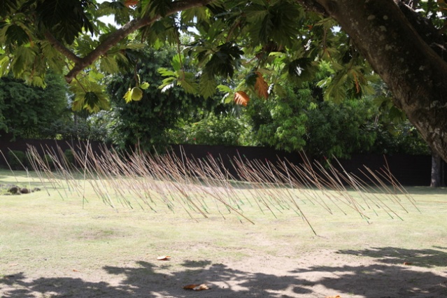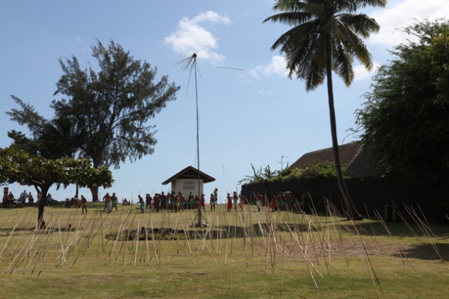« Dans beaucoup d’îles des Tuamotu on ‘pique’ le coco. Nous on joue au javelot pour notre île de Napuka contre Anaa, Tepoto, Niau…Toujours garder cette culture traditionnelle des Tuamotu, le ‘patia fa’, pour ne pas qu’on oublie ce sport là. On vit ici, on a quitté notre île depuis petits mais on continue à s’entraîner pour préparer le 14 juillet. Le poteau est à 9,50m de hauteur à 22m de distance, avec le soleil ce n’est pas facile. »