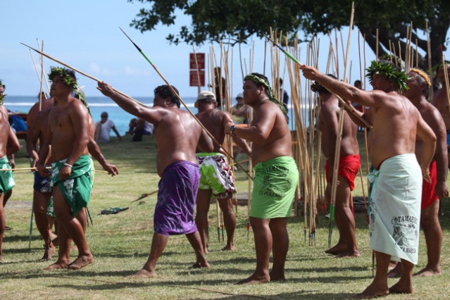 Samedi 15 mars 2013. Le week end dernier se déroulait la première journée du championnat des ‘sports maohi’ au Mahana Park de Paea . Des épreuves de « levées de pierre », de « lancer de javelot » et de « grimper au cocotier » étaient au programme.