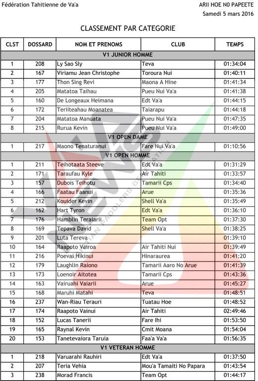 La saison de V1 avait recommencé en début de mois avec la Arii Hoe no Papeete remportée par Steeve Teihotaata, le rameur émérite de Edt Va’a. Cette fois ci, c’est le jeune rameur de Shell Va’a Damas Ami qui s’impose lors de cette deuxième course de la saison qui a réuni plus d’une centaine de rameurs. Il termine devant le Super Aito 2014 Rete Ebb et Yohan Cronsteadt, un autre grand champion de la discipline, pilier de Shell Va’a.