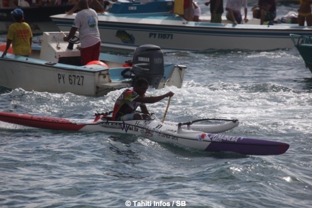 « J’avais vu un ‘paquet’ de pirogues vers Paea avec Yohann et un autre avec Damas Ami côté Mahina, moi je suis resté au milieu, quand je voyais qu’un cap marchait mieux je me pointais juste à côté d’eux, c’était ça ma stratégie sur le chenal et après c’était de mettre le turbo pour rattraper les autres. »