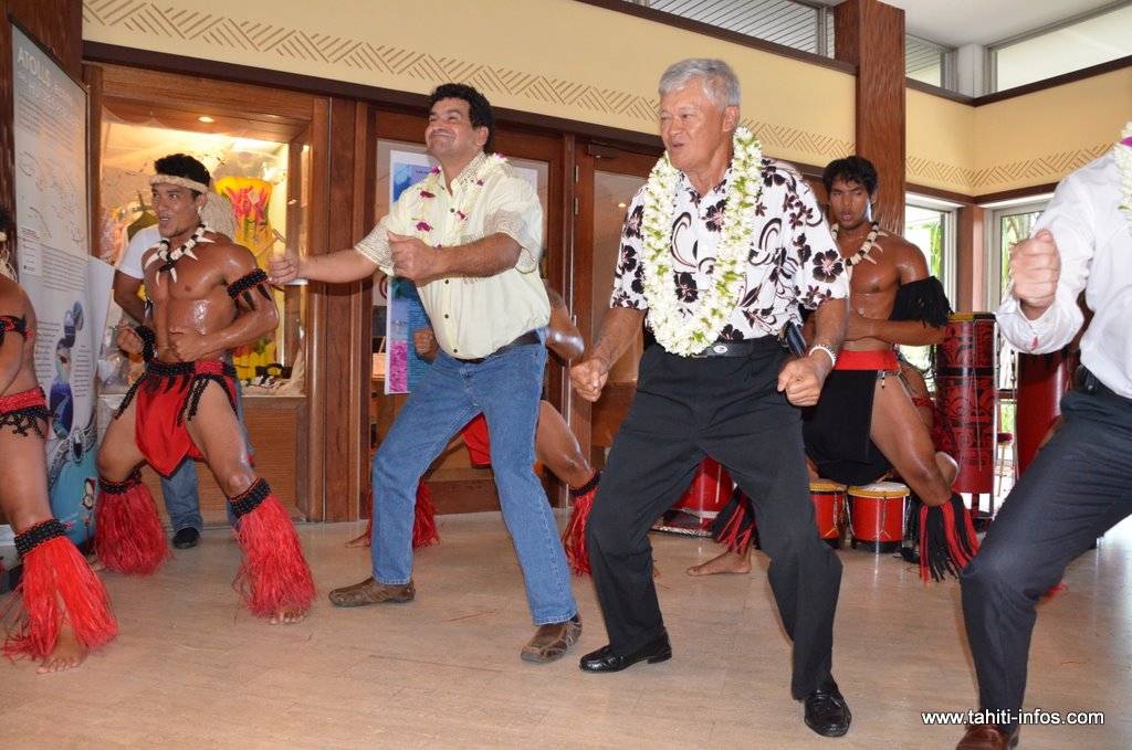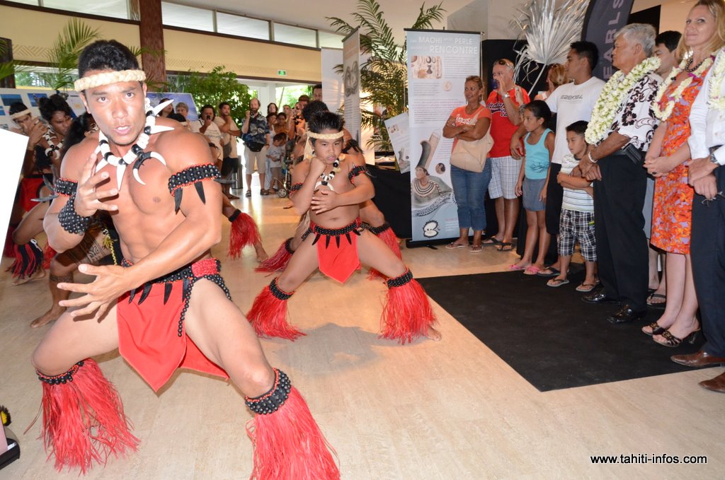 Cette exposition culturelle retraçant l’histoire de la perle de Tahiti de 1600 à nos jours a été inaugurée mercredi soir par les ministres des ressources marines et de l'agriculture, Temauri Foster et Kalani Teixeira, qui se sont livrés de bon coeur à un haka devant les visiteurs du salon (voir le diaporama ci-dessous).
