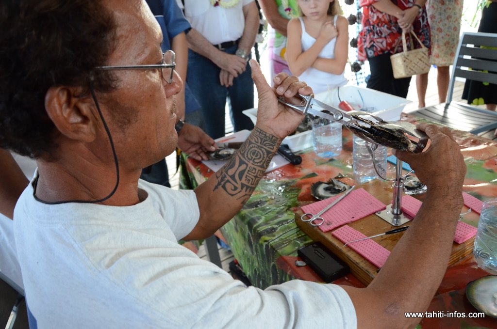 Enfin, une reconstitution de ferme perlière, installée sur une pirogue double sur la plage du Sofitel, permet aux visiteurs de découvrir les techniques de greffe, comme s'ils visitaient une ferme des Tuamotu.