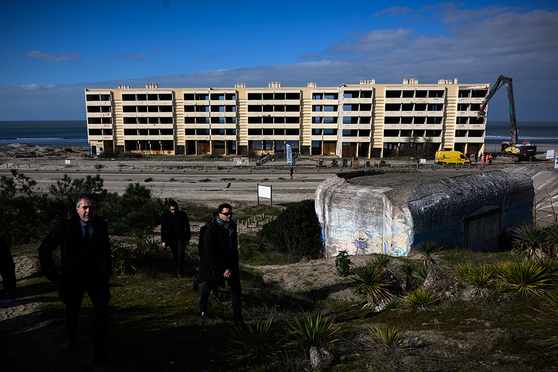 Soulac-sur-Mer, France | AFP | vendredi 03/02/2023 - La démolition du "Signal", immeuble devenu symbole du recul des plages sur le littoral atlantique, a démarré vendredi à Soulac-sur-mer (Gironde), alors que des dizaines de milliers d'autres logements sont menacés d'ici la fin du siècle.