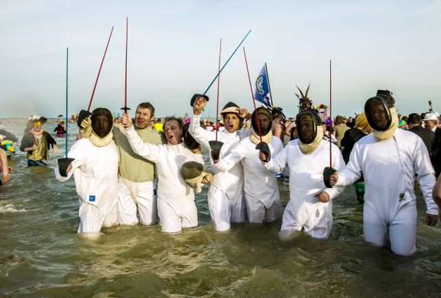 Chaque "givré" a été récompensé jeudi par une bouée canard en plastique, un bol de soupe à l'oignon et un "Certificat de taux de pénétration dans la mer du Nord".