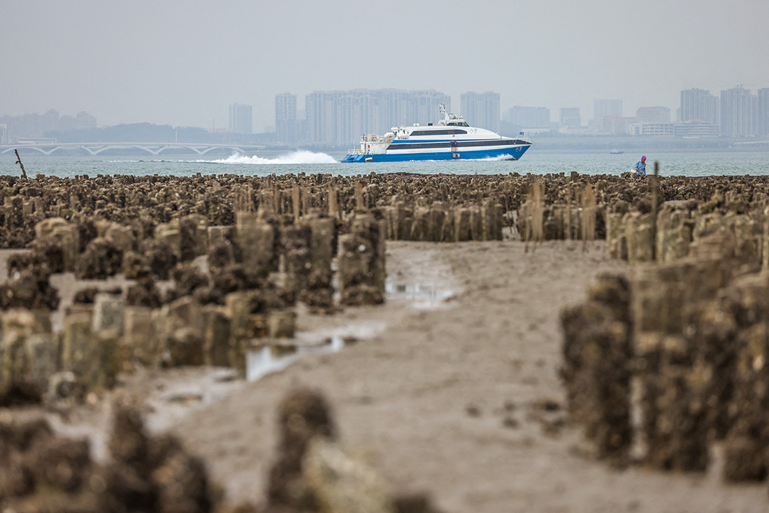 Les imposants gratte-ciel de la mégapole chinoise de Xiamen sont immanquables à moins de 5 kilomètres, mais sur l'autre rive du détroit le décor contraste: les pieds dans la boue, Li Kai-chen charge sur ses épaules un panier rempli de mollusques fraîchement cueillis.